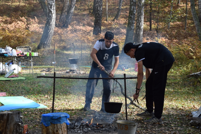 Юные повара "колдовали" у костра. По всему лесу на Дробовой горе разносились ароматы блюд, приготовленных в полевых условиях. У ребята получился замечательный обед. Отдохнув, они приступили к соревнованию.