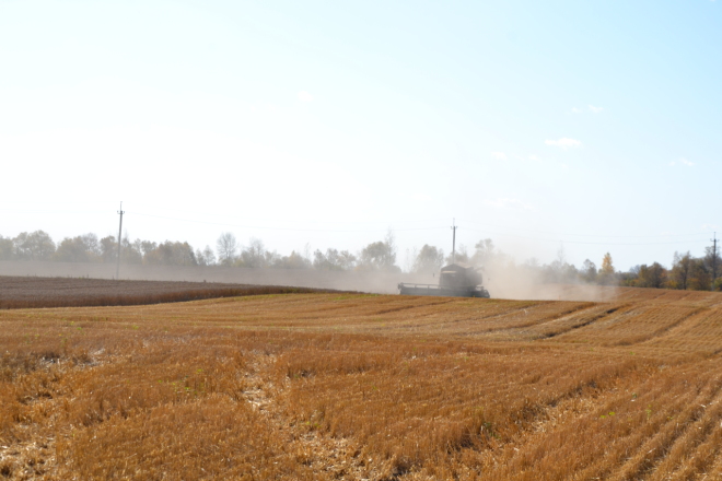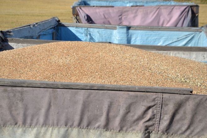При средней урожайности 37,1 центнера с гектара валовый сбор зерна составил 151 869,7 тонны. Обмолочено 19 574 га пшеницы или 75 % от плана, 5 558 га – ячменя – 84 %, овса – 9 286 – 90 % и гороха – 6 066 – 100 %.