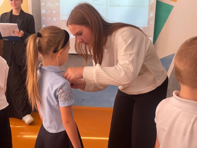 Каждому первокласснику вручили значки Орлят, что символизировало их официальное вступление в дружную команду. Сообщает в соцсетях комитет по образованию администрации муниципалитета.