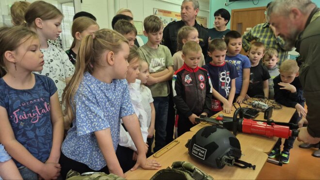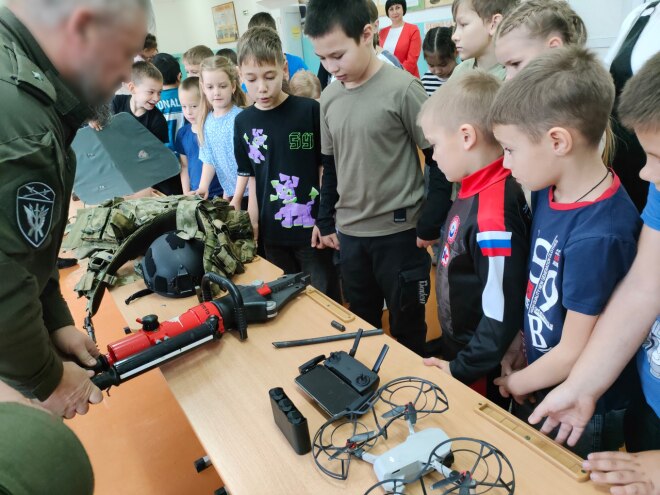 Сотрудники спецподразделений СОБР и ОМОН провели для школьников урок Мужества, рассказав о выполняемых служебно-боевых задачах, в том числе и в ходе специальной военной операции. Ребята с азартом в глазах рассматривали и примеряли специальные средства защиты. В качестве подарка мальчики и девочки получили шевроны и пообещали бережно их хранить. Росгвардейцы напомнили детям о мерах антитеррористической защищённости и порядке действий при обнаружении подозрительных предметов.