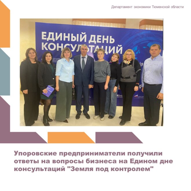 Представители Упоровского муниципального округа приняли участие в важном мероприятии для бизнеса, организованном в рамках национального проекта «Эффективная и конкурентная экономика». Это был Единый день консультаций под названием «Земля под контролем», который прошел на открытой площадке для предпринимателей Тюменской области.