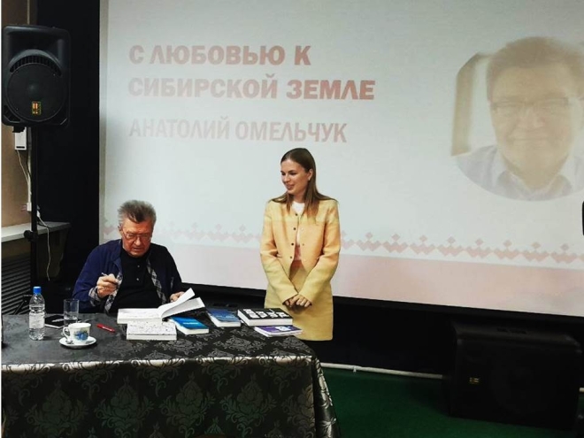 Анатолий Омельчук представил читателям флешбук "Книга Сибири" – мультимедийное собрание книг с 1978 по 2019 год. В электронное издание входят биография, библиография, большое количество фото- и-видеоматериалов писателя.