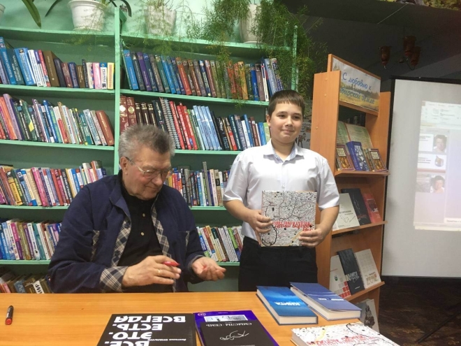 За самые интересные вопросы свои книги с автографом гость подарил участникам встречи Юлие Мефёдовой (с. Упорово) и Евгению Арсентьеву (учащийся Суерской школы). Библиотеки также получили авторские издания от Анатолия Константиновича.