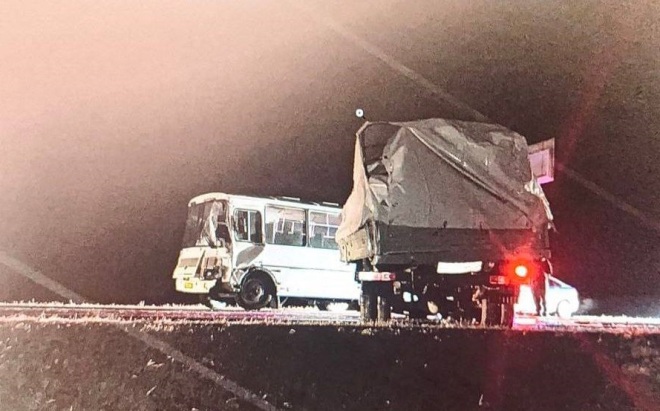 По предварительной версии водитель "Газели" не справился с управлением грузовика, произошло столкновение с автобусом, ехавшим в попутном направлении.