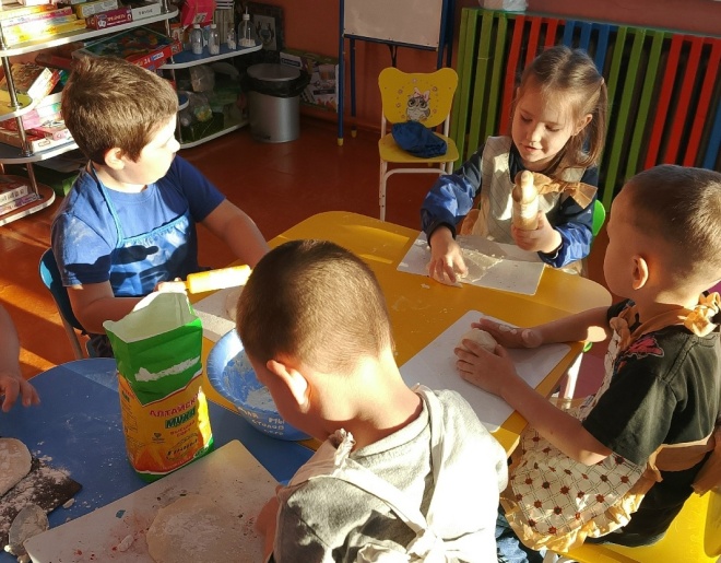 Пока они готовят своими руками подарки для мамочек. Ребята слепили сердечки из солёного теста, который был самостоятельно ими замешан. Дружно и сообща мяли, раскатывали его, а затем делали фигурки. У всех малышей сердечки получились красивыми.