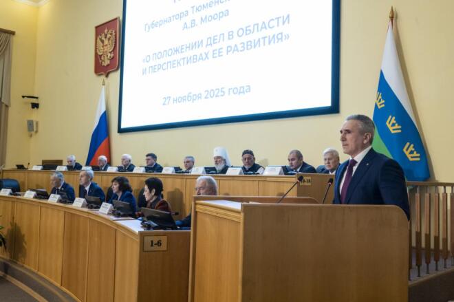 Бюджет региона сохранит ярко выраженную социальную направленность. Об этом заявил губернатор Александр Моор в ходе ежегодного послания "О положении дел в Тюменской области" на 43-м заседании областной думы 27 ноября.
