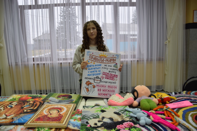 Участники мероприятия с удовольствием посетили выставку изделий ручной работы людей с ограниченными возможностями здоровья. Украшением экспозиции стали картины, иконы из бисера, вязаные игрушки и коврики.