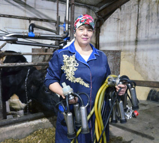 Елена Шабалина из посёлка Емуртлинского работает дояркой двадцать четыре года. В её заботливых руках находятся шестьдесят семь коров, которым она отдаёт большую часть своего времени и сил.