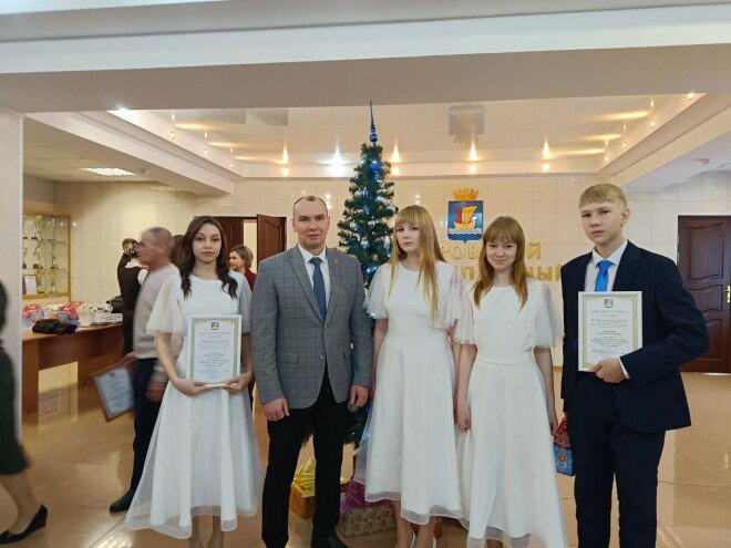 Первый руководитель муниципалитета поздравил юных талантов с наступающим Новым годом и вручил им благодарственные письма за высокие достижения в разных сферах деятельн6ости. Анатолий Валерьевич тепло поблагодарил родителей за воспитание трудолюбивых, целеустремлённых детей.