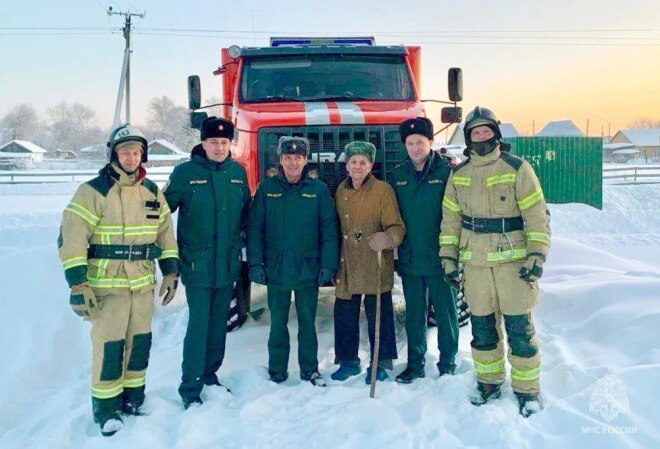 В селе Упорово сотрудники 143 пожарно-спасательной части областного главка МЧС России навестили ветерана пожарной охраны Михаила Фастовича Сырникова.