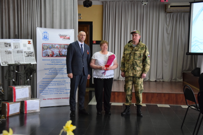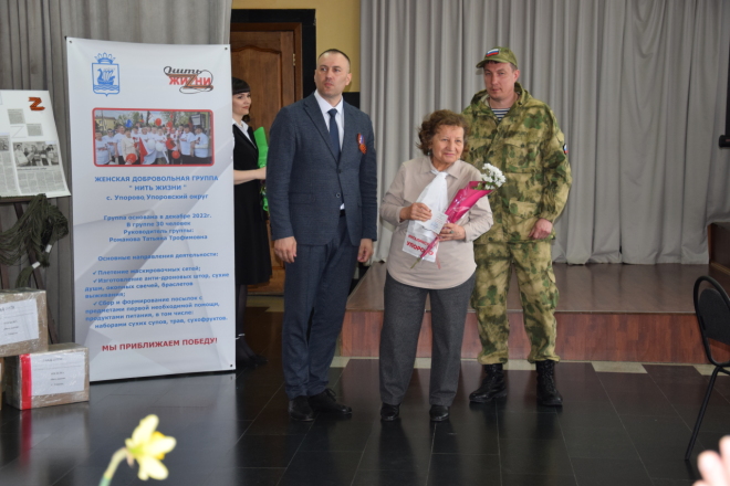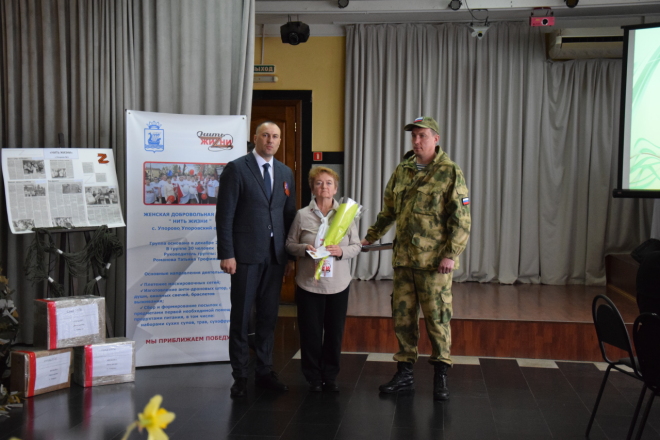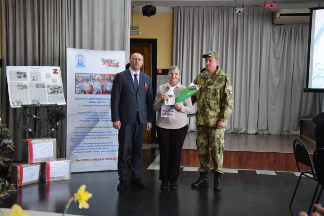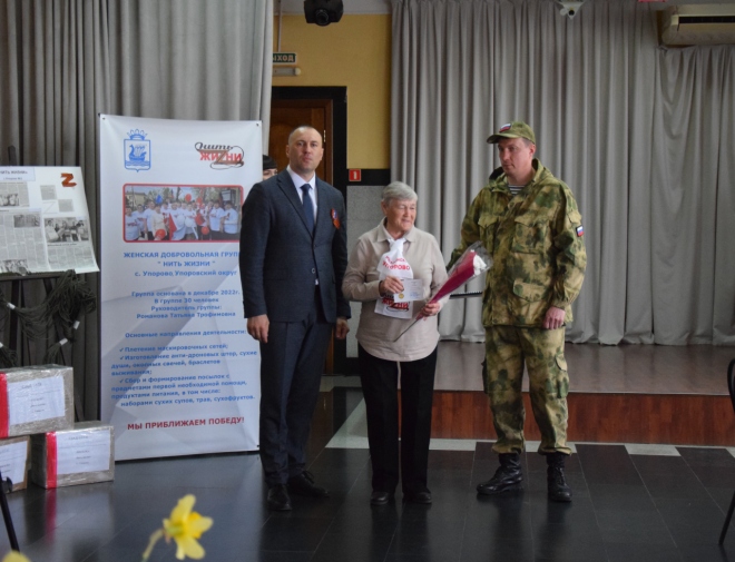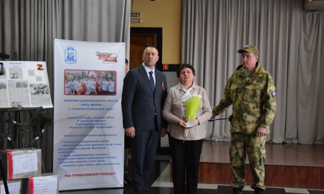 – Очень символично, что мы проводим сегодняшнюю встречу в преддверии празднования 81-й годовщины Великой Отечественной войны. Формат вашей работы очень многогранен, вы умело и слаженно сформировали целую систему гуманитарного конвоя, который, безусловно, решает все поставленные задачи и удовлетворяет запросы, поступающие от земляков. Примите искренние поздравления, сердечную благодарность и низкий поклон от главы муниципального округа Анатолия Валерьевича Игловикова, – сказал первый заместитель главы Упоровского округа Александр Денисов.